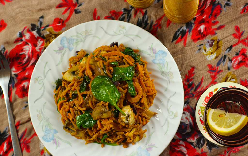 Turns out that it is not just courgettes that are great to use as ‘pasta’ – but so too are sweet potatoes! One of our firm favourites, these orange bad boys are high in vitamin C and beta-carotene and are so incredibly versatile. Although this dish has few ingredients, it is unbelievably comforting. The sweet potato comes alive in the zesty sauce (thanks to the lemon juice and tahini) and nearly melts in your mouth with each bite!