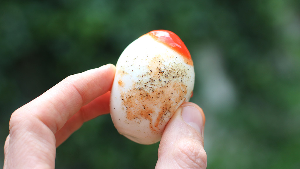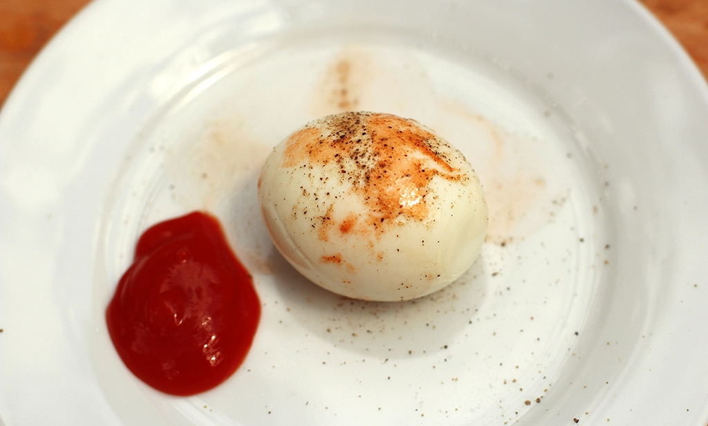 - Peel egg, crack some sea salt and black pepper (to taste).